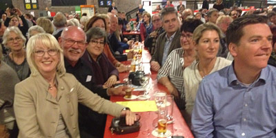Dass es wieder Frühling ist, merkt man spätestens daran, dass der SPD-Ortsverein Köln-Dellbrück zum Frühjahrsempfang einlädt – dieses Mal am 15. April 2016 in das Gemeindehaus der Christuskirche. Die Veranstaltung war wie auch in den Vorjahren gut besucht von Gästen aus Dellbrücker Vereinen, Schulen, Kirche, Politik und interessierten Bürgern. Besonders freute sich Brigitte Beckmann, Vorsitzende des Ortsvereins, die den Abend moderierte, über den Besuch von Martin Börschel, Landtagsabgeordneter der SPD im Landtag NRW und dem Bundestagsabgeordneten und gesundheitspolitischen Sprecher der SPD, Prof. Dr. Karl Lauterbach. Dieser leitete den Abend ein mit einem anekdotisch aufgelockerten Bericht über die Arbeit der SPD zur Umsetzung ihrer Koalitionsziele, vor allem in Bezug auf die Rentenreform und den Flüchtlingskonsens. Im weiteren Verlauf des Abends stellte er sich den Fragen der anwesenden Gäste an einem der vielen Stehtische.